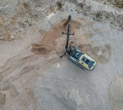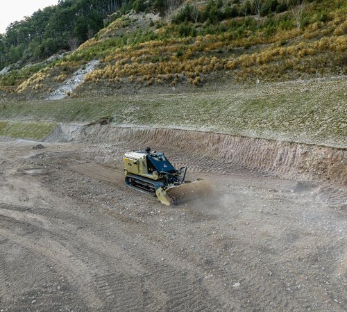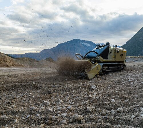 The FAE PT-300 D:Mine is equipped with a CAT engine with 275 HP in the Tier3A/STAGE 3 and a version and with 302 HP in the tier 4F/STAGE 5. The machine can work at 45° front slope and 25° side slope and can work in extremely cold and hot weather. Wet land is not an obstacle due to the low ground pressure provided by the 660 mm wide track pads. The PT-300 D:Mine machine can be used for ground preparations for demining operations with a tiller or flail attachment and can be higly productive with a mulching attachment for cutting vegetation on the BAC (Battle area clearance operations) in wich the tool is required to work at the surface level but not bellow it.